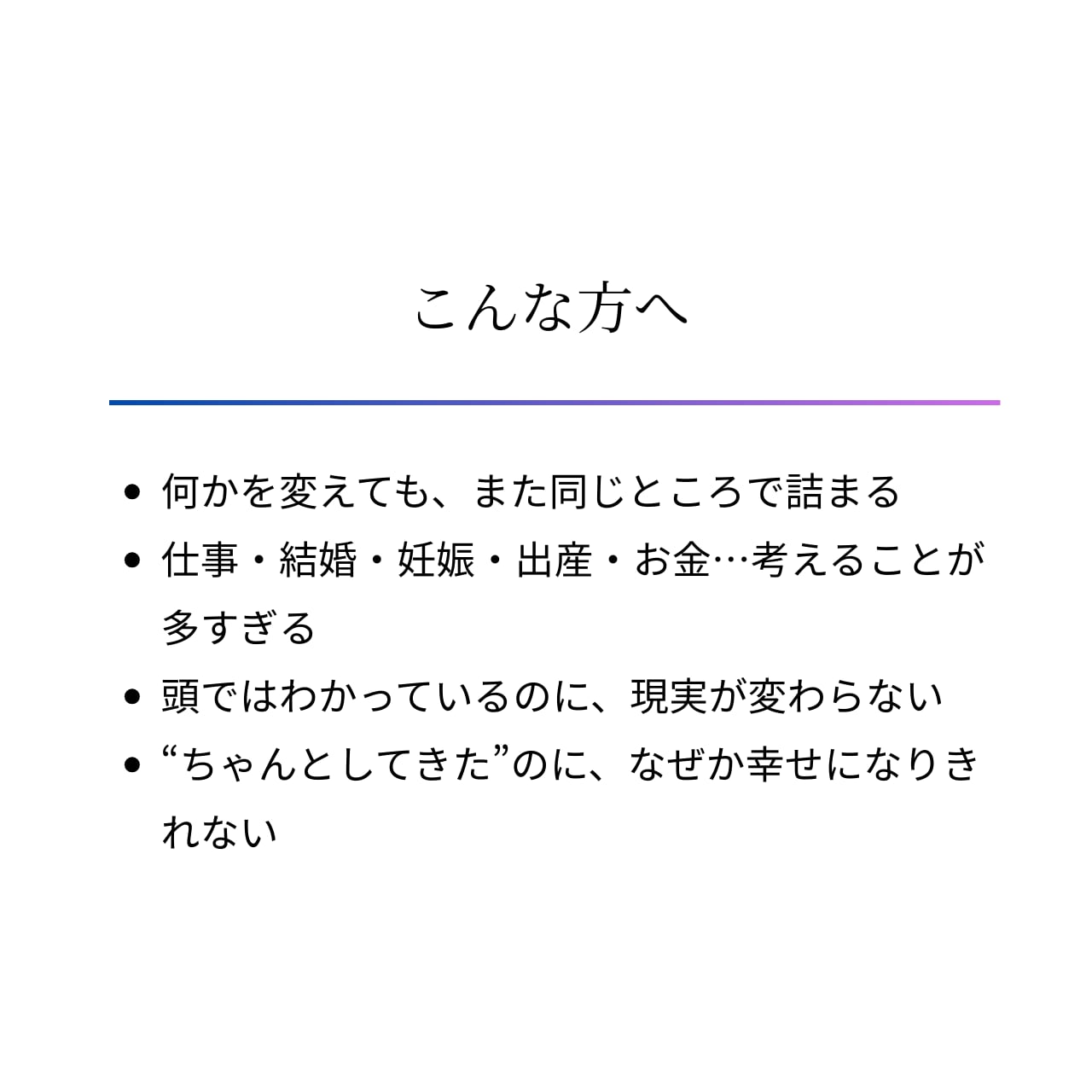 あなたの人生の“真の課題”を一緒に見ていきます。